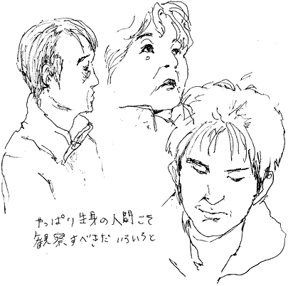 気がつくと中年ばかりスケッチしてる。っていうか正直若い人って顔の見分けがつかないです。特に女性は化粧するからなー。中高年は歳月とともに培われた個性っていうの?がニョジツにでてきて非常におもしろい。